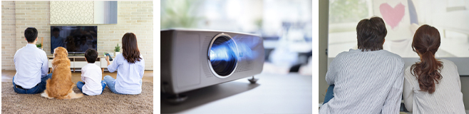 집 공간 중 한 곳에 빔프로젝터를 설치해 홈시네마를 즐겨보는 건 어떨까요?