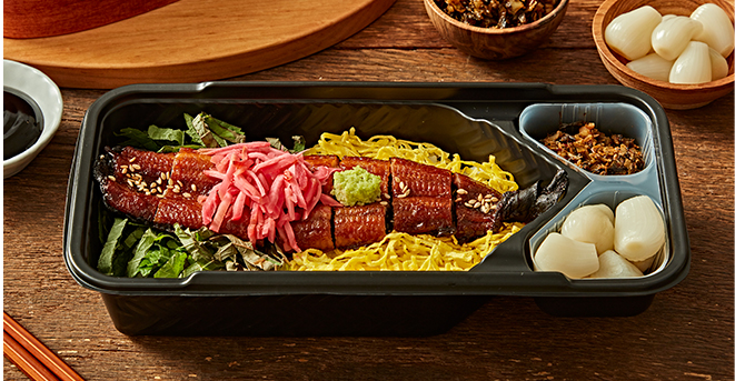 표고버섯 밥 위에 특제 간장 양념을 발라 구워 낸 민물장어 한 마리를 통째로 올리고 장어 풍미를 한 껏 돋궈줄 깻잎, 초생강, 생고추냉이 등을 부 메뉴로 구성되어 있습니다.