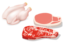 생닭, 소/돼지고기